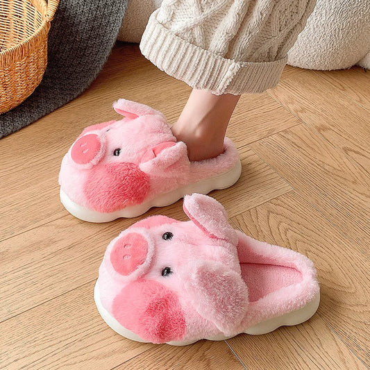 Womens Fuzzy Kawaii Pink Piglet Slippers